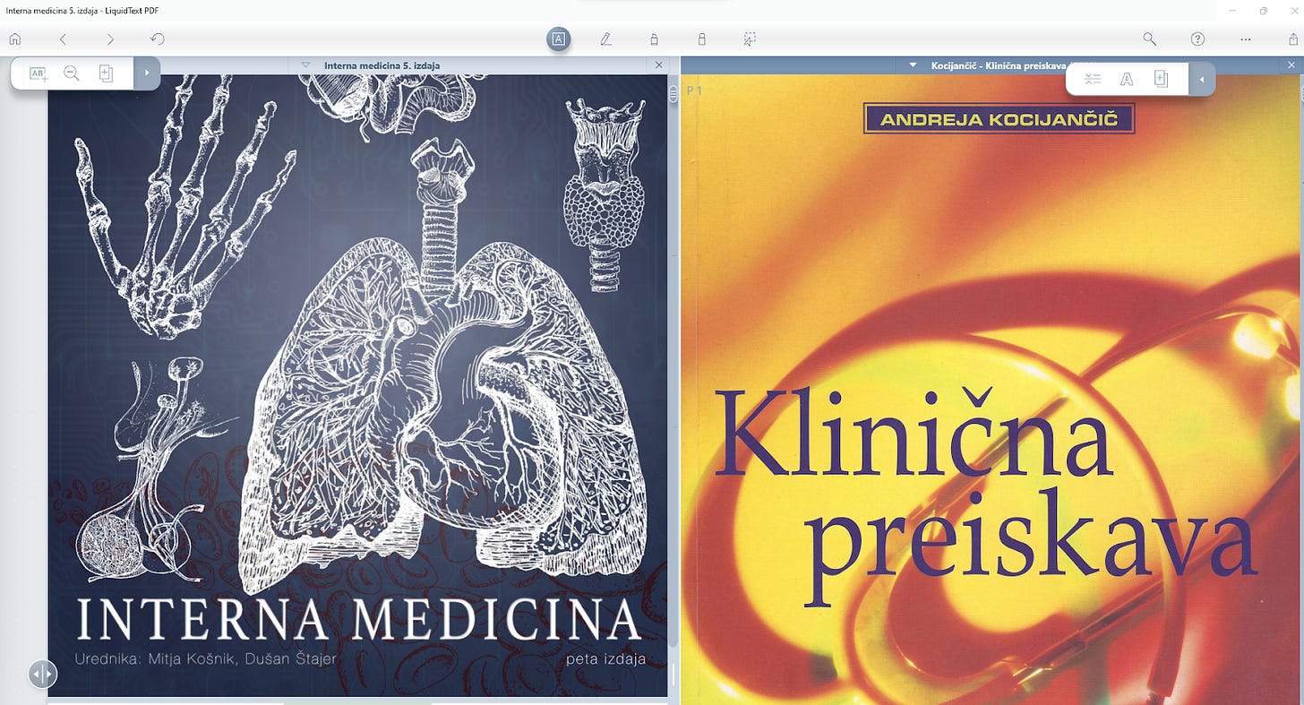 Na spodnjih slikah sem prikazal hiter primer. Na njih lahko vidite sočasno odprta dva pomembna učbenika pri učenju medicine - Interna medicina in Klinična preiskava.